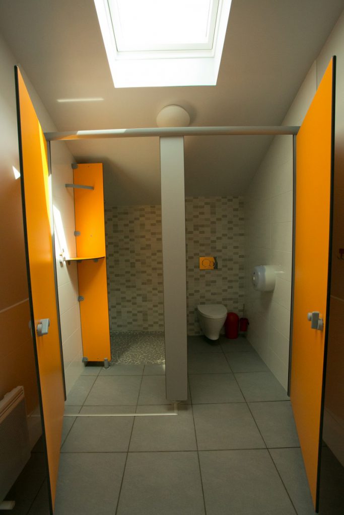 - une salle de bain commune comprenant 2 douches, 2 WC et 4 vasques ;